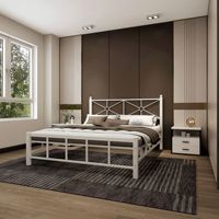 Moderne Haupt schlafzimmer möbel Queen King Eisen Plattform bett Weißer Stahl Metall Doppelbett rahmen