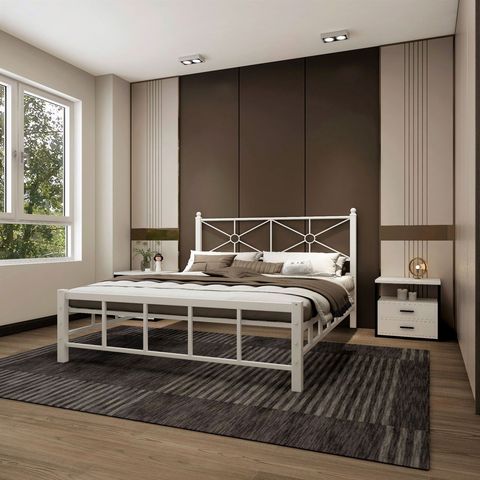 Casa moderna camera da letto letto letto matrimoniale in ferro Queen King letto in acciaio bianco metallo doppio telaio del letto